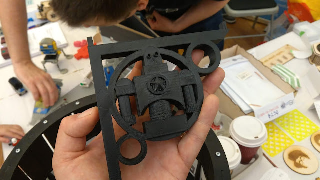This 3d printed shelf bracket is one of the many amazing things on the little sandbox stall. This project is typical of little sandbox and shows how brilliant they are... They get their young people to design and build things like this that become part of the spaces they use, it helps create a sense of ownership for the young people over the project as well as teaching them some skills. Fab. They are also actively pursuing SatNOGS as a project and Rocketry... LEGENDS!
